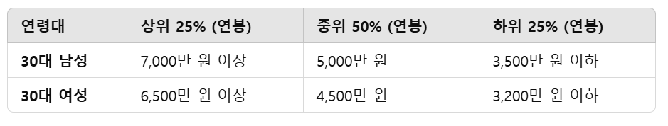 반면, 30대 여성 평균 연봉은 약 4,350만 원으로,